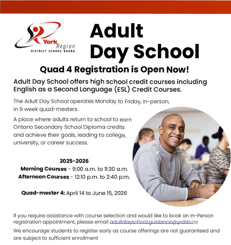 Check out the flyer for more details or speak with Ms. Hotrum (jesse.hotrum@yrdsb.ca)
