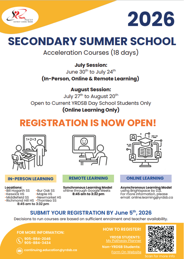 Students who are writing the Spring OSSLT on Monday March 30, 2026 need to arrive at the library before 8:30 a.m. Students writing have been sent an email to their GAPPS account. This only applies to students who missed the Fall session or were unsuccessful in the Fall OSSLT.